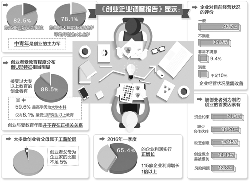 由经济日报社中国经济趋势研究院、中国社科院数量经济与技术经济研究所共同编制的《创业企业调查报告》今日发布。从调查样本的抽样结果来看,大多数企业属于中小企业,样本企业2015年销售收入加权平均值为591.2万元,93.2%的企业员工人数小于100人。