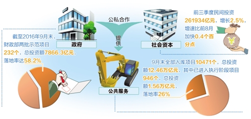 日前,财政部政府和社会资本合作(PPP)中心发布统计数据显示,截至2016年9月末,财政部两批示范项目232个,总投资额7866.3亿元,落地率达58.2%。