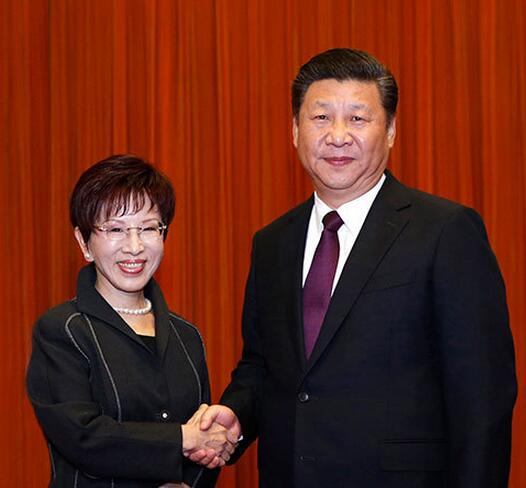 11月1日,中共中央总书记习近平在北京人民大会堂会见洪秀柱主席率领的中国国民党大陆访问团。新华社记者 鞠鹏 摄