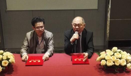中国林产工业协会秘书长石峰(右)与八戒工程网总裁唐兵(左)签署战略协议。中国经济网记者 佟明彪/摄