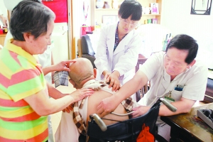 “呦,是安大夫来了,太好了,欢迎欢迎!”昨天上午,记者随海运仓社区卫生服务站的安景发医生和徐京华护士敲开了魏全惠老人的家,老太太陈玉敏一看是安医生来了,忙两手作揖,热情地邀请大家进门。75岁的魏全惠老人被高血压、冠心病、糖尿病等慢性病纠缠,因为脑梗,他常年瘫痪。安医生给两位老人量了血压、心跳,确定老人各项指标稳定,老太太总算放了心。