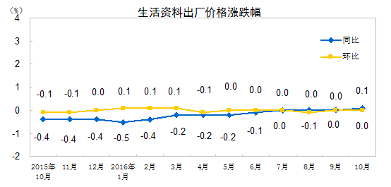 北京11月9日讯 据国家统计局网站消息,2016 年 10 月份,全国工业生产者出厂价格环比上涨 0.7% ,同比上涨 1.2% 。工业生产者购进价格环比上涨 0.9% ,同比上涨 0.9% 。 1-10 月平均,工业生产者出厂价格同比下降 2.5% ,工业生产者购进价格同比下降 3.3% 。