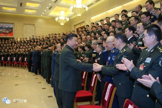 △中央军委后勤工作会议11月9日至10日在京举行。9日上午,中共中央总书记、国家主席、中央军委主席习近平出席会议并发表重要讲话。这是习近平亲切接见与会代表。解放军报记者冯凯旋摄