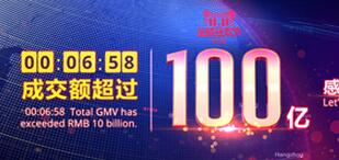 深圳11月11日讯 11月11日零点,阿里巴巴集团CEO张勇在杭州技术指挥中心宣布2016年天猫双11全球狂欢节启动。仅过了6分58秒,2016天猫双11总成交已超100亿元人民币。