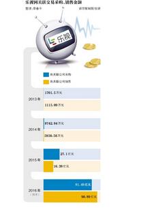 2013年,乐视网同关联方销售1115.09万元,采购1701.5万元。2015年,乐视网向关联方采购27.1亿元,销售16.38亿元,远超年初预计的10亿元采购额、6亿元销售额的计划。