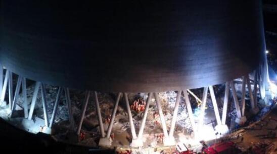 11月24日晚,搜救人员正在现场对失联人员进行搜救。当天上午7时30分许,江西省宜春丰城电厂三期扩建工程D标段冷却塔平桥吊倒塌,造成模板混凝土通道坍塌。截至当晚18时许,事故已导致67人遇难,2人受伤,另有1人正在搜救中。 刘占昆 摄
