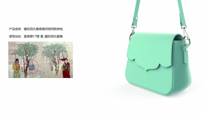 根据壁画中的形象,邱丰顺的团队设计出了同款挎包。“没想到古人竟然这么时尚,我们把敦煌壁画中古人的包加上2016年的流行元素,重新赋予它材料、色彩以及现代感,做出来的挎包产品非常漂亮。”邱丰顺感叹,“中国的设计师何其幸运,敦煌莫高窟累积了中国各朝各代优秀艺术家的创作,为我们留下了丰富的图像、色彩、文字。”