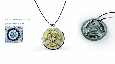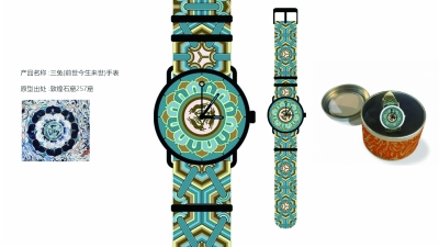 三兔藻井图位于敦煌莫高窟第407窟,绘制于公元6世纪的中国隋代,最早出现于敦煌的藻井之上。莲花式井心中呈现出3只兔子共用3只连在一起的耳朵,在往同一个方向奔跑着,彼此追随着,却又永远追不到对方的图景。三兔图不仅存在于佛教的艺术中,在时间和空间相距这么遥远的佛教、基督教和伊斯兰教中都曾采用这个图像。“三只兔子代表人的前世、今生和来世,我们用这个引喻把它们放在手表里,男朋友送给女朋友手表,就寓意你要爱我三世。”邱丰顺说。