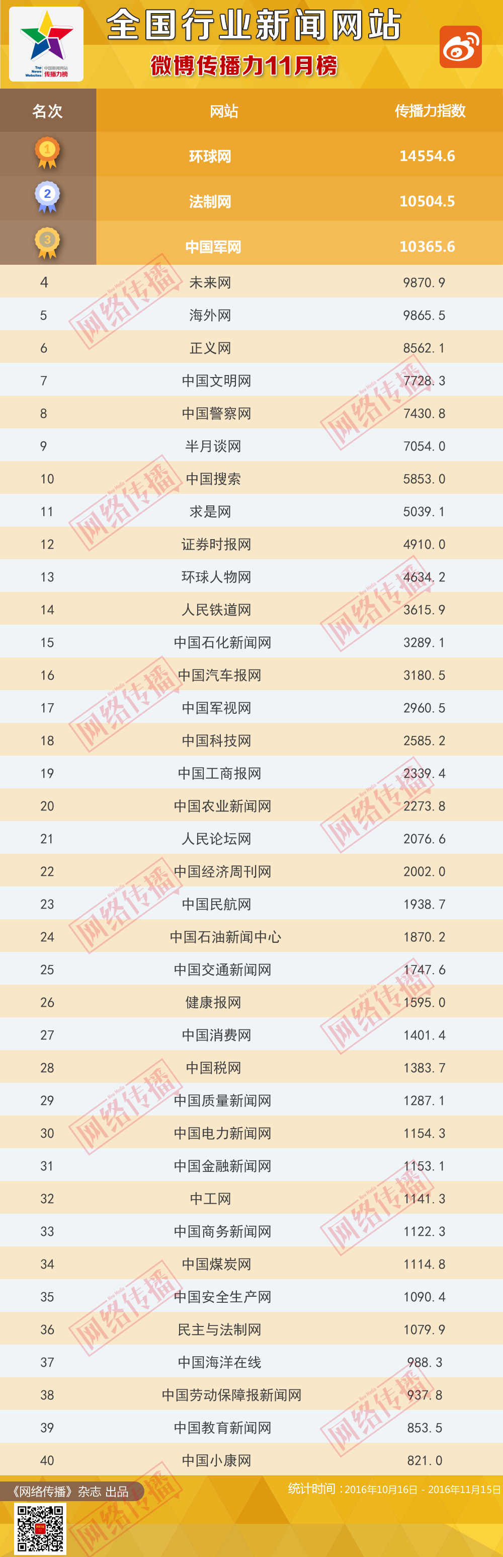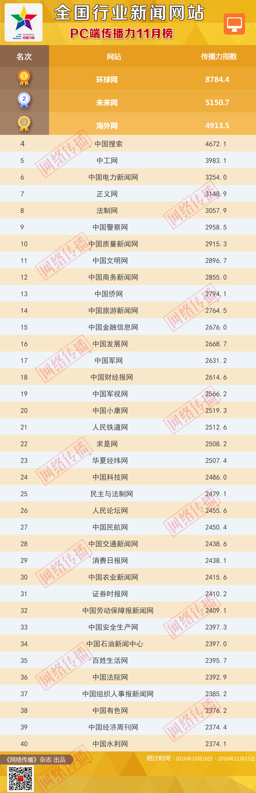 全国行业新闻网站传播力2016年11月榜发布
