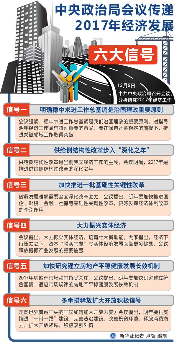 图表:中央政治局会议传递2017年经济发展六大信号 新华社记者 卢哲 编制