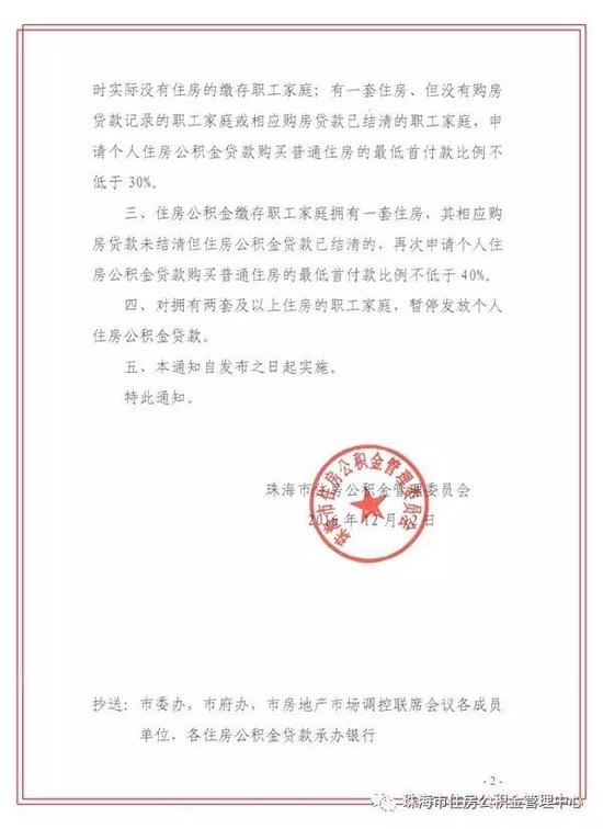 北京12月12日讯 今日,珠海市住房公积金管理中心发布《关于调整住房公积金贷款首付比例有关事项的通知》,“通知”中指出对拥有两套及以上住房的职工家庭,暂停发放个人住房公积金贷款。