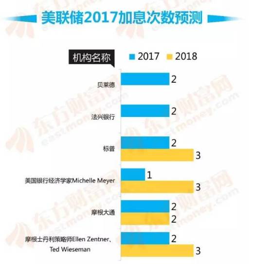 一般预测可能会加息三次。但特朗普新政具有很大不确定性,由此带来的全球经济波动也有不确定性,所以最终能加息几次,很难说。