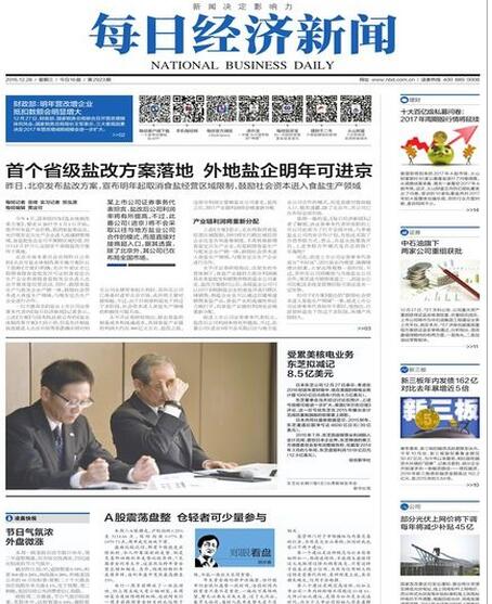 一位不愿具名的盐业上市公司证券事务代表向《每日经济新闻》记者表示,上述《方案》与国务院此前公布的《盐业体制改革方案》大同小异,但是允许制盐商直接进入北京市场等条款确实将对相关公司业绩带来较大利好。其所在公司已准备好进军北京市场,此次将主要对接商超。不过,由于目前原料盐处于供过于求阶段,社会资本进入食盐生产领域的积极性可能不高。