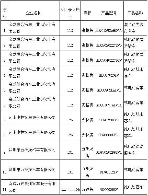 另外,工信部还把4家车企的11款车型撤销出目录。这四家车企为:金龙联合汽车工业(苏州)有限公司,河南少林客车股份有限公司,深圳市五洲龙汽车有限公司,奇瑞万达贵州客车股份有限公司。