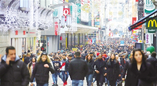 1月3日,比利时冬季打折季正式开始,将持续至1月31日。图为布鲁塞尔的一条商业街上人头攒动。 (新华社发)