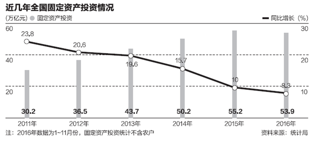 固定资产投资对经济增长的拉动效果越来越弱。投资对经济增长的拉动已经连续四年下滑,从2013年的4.3个百分点下降至2016年的2.5个百分点。