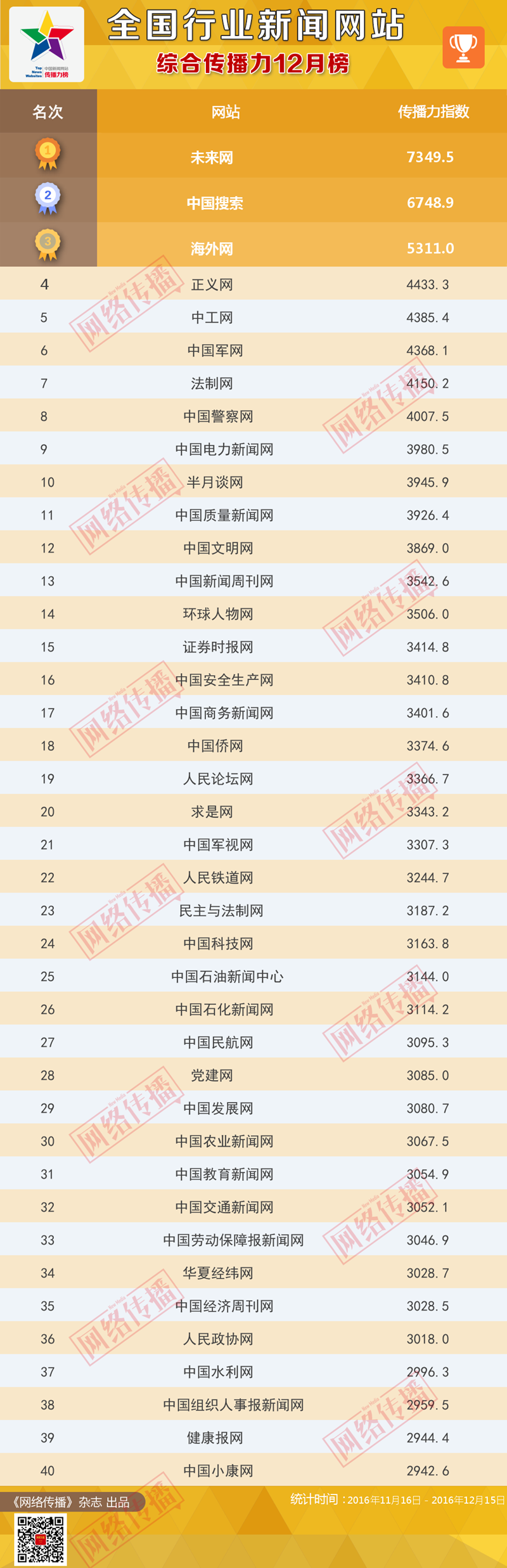 全国行业新闻网站综合传播力12月榜