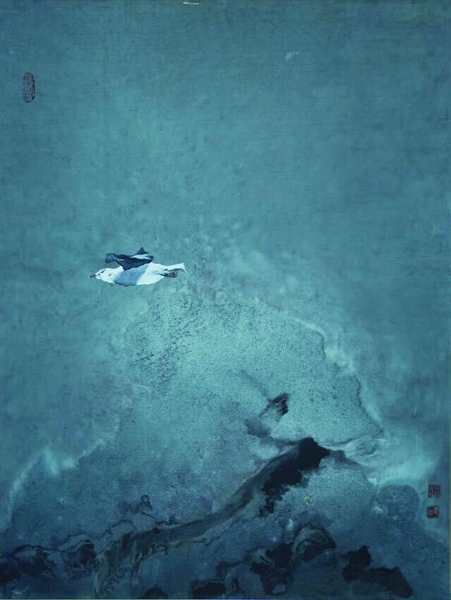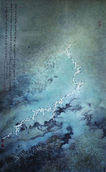 姜云宗先生的中国泼墨画注重气势,多取桑海风韵和抽象于具象之间,追求富有理想魅力,致力于大海主题的探索。他的水墨画与传统的笔墨有着截然不同的韵味和境界。顺其自然又别具匠心,是一种以全新的"墨象"为中心的水墨语言。