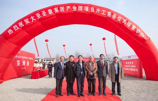 2017年1月11日上午,落户于宿迁市宿城区运河宿迁港产业园的大亚圣象家居产业园苏北基地年产50万立方米刨花板项目开工奠基仪式隆重举行。宿迁市市委常委组织部部长过利平,宿迁市人民政府副市长赵丽丽,大亚科技集团有限公司董事局主席兼总裁、大亚圣象家居股份有限公司董事长陈晓龙,中国经济报刊协会副会长兼秘书长胡英暖、宿迁市有关领导、宿迁市宿城区直各部门代表,特邀嘉宾及大亚圣象公司代表共200人参加本次的开工奠基仪式。