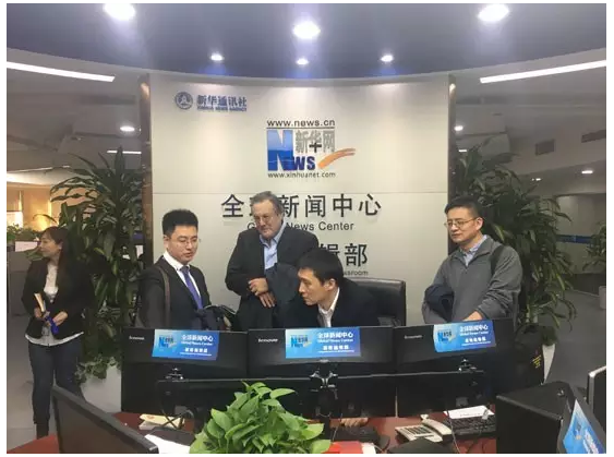 在新华网融媒体未来研究院,科尔教授一行体验生物传感技术在收集电影受众反应、汽车驾驶人状态等方面的应用。他表示,新华网在无人机和生物传感技术等人工智能领域的研究已居世界前列。
