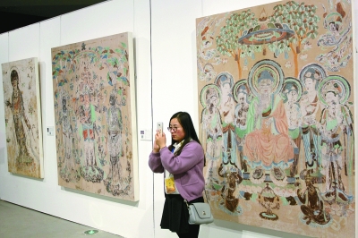 “敦煌壁画艺术精品高校巡展”展出的敦煌壁画精品,充分利用了高保真数字技术,真实地再现了敦煌艺术的神韵和信息。 光明图片/视觉中国