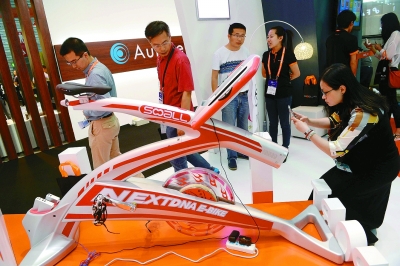 首届CES亚洲消费电子展上,可穿戴设备受到参观者高度关注。 光明图片/视觉中国