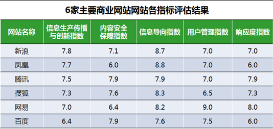 各商业网站在信息生产传播与创新能力、信息导向方面表现差异不大,整体有待提高;在内容安全保障方面,部分网站标题党问题较为突出;在用户管理和响应度方面,个别网站未严格落实管理制度,整体有待加强。