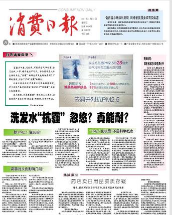 “去屑防霾,一套搞定”“洗净头皮内的PM2.5”“雾霾来袭,用无硅油洗头水养护头皮洗出健康”……近期,市面上推出了不少以“抗霾”为宣传语的洗发新产品。“因为颗粒较小,可以沉积在头皮毛囊口相对较深的位置,并且PM2.5颗粒容易携带有害化学物质,会对头皮的健康产生不小的影响”。2月14日,在北京亦庄山姆会员店洗发水专区,一位“抗霾”洗发水导购这样告诉记者。
