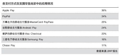波士顿零售合作伙伴(以下简称“BRP”)周二提供的调查数据显示,苹果的移动支付服务Apple Pay已超越先前的市场龙头PayPal,成为美国商家最普遍支持的移动支付平台。