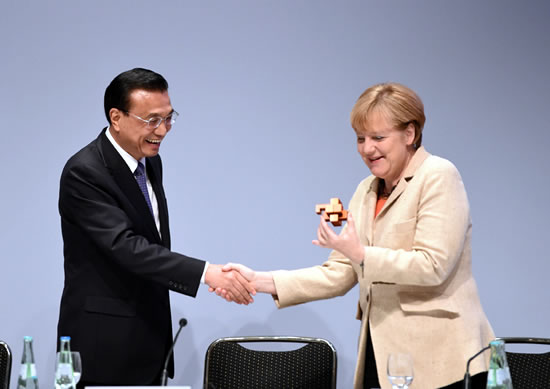 2014年10月10日的中德经济技术论坛上,李克强总理将一精巧的鲁班锁现场送给默克尔。他说,这是访前天津中德职业技术学院师生共同创作的作品,希望我送给默克尔总理。解开鲁班锁是解决一道难题,相信中德之间的合作能不断创新,共同破解世界性难题,开启美好的未来。
