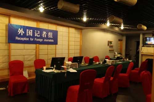 新闻中心二层为采访和服务区域,设外国记者组、港澳台记者组、境内记者组及新闻发布厅、采访接待室等,为记者提供采访和咨询服务。
