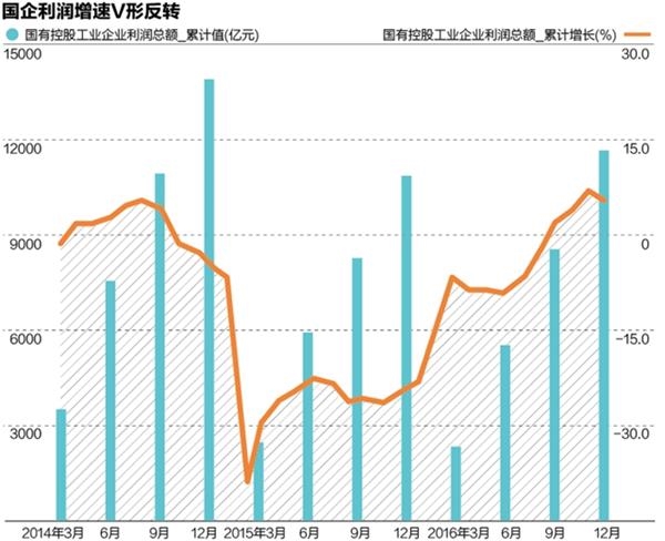 进入2017年,国企效益的继续回升仍然是挑战与机遇并存。国企所代表的先进制造业和服务业是中国实体经济的骨干力量,有了国企利润恢复所显现的实体经济振兴前景,中国经济才能走得更稳健。