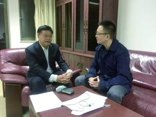 中央党校教授谢春涛(左)接受央广记者赵九骁采访
