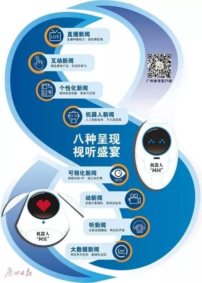 今年专门设计了两款机器人,一款写稿,一款“陪聊”,一上线就引起了轰动。这两位最特别的新兵“阿同”和“阿乐”,他们的名字“同乐”——正是广州日报社所在的同乐路10号。“阿同”是以理性思维见长的“小帅哥”,他的强项就是分析政府工作报告。