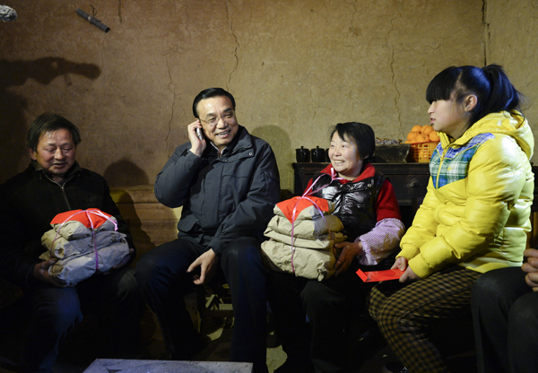 连续 4年,李克强都在春节前夕深入偏远穷苦地区看望百姓。今年春节前的最后一次国务院常务会上,他专门部署要求全国各县(市、区)建立健全由政府负责人牵头的困难群众生活保障工作协调机制,一定要把党中央、国务院相关决策部署落实到基层。