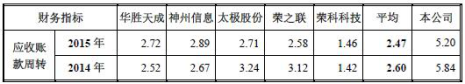 2013年至2016年,公司应收账款净额分别为3,752.86万元、7,628.38万元、7,414.94万元和6,591.49万元,占公司流动资产的比例分别为24.12%、31.88%、26.64%、19.46%,应收账款周转率分别为6.77、5.84次、5.20 次和6.72次。