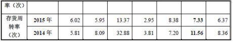 公司存货周转率分别为8.36次、6.37次和4.43次,2015年度、2016年度公司存货周转率分别较上一年度有所下降。与同行业可比上市公司相比,公司存货周转率略低于同行业可比上市公司存货周转率的平均水平。