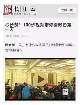 在两会报道中,创新表达方式,丰富呈现形式。除了直播互动和专题报道,长江云在本次全国两会上以数据解读、方言热聊、锐图呈现、点赞互动等形式,推出了10款创意产品,获得了数百万人次的参与点赞和转发。