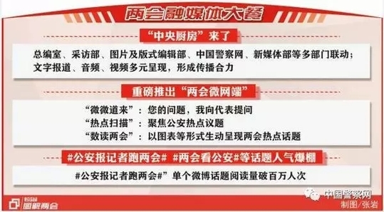人民公安报社“中央厨房”烹制的“公安私房菜”既有气质又有颜值。《两会微网端》将网络、微博、微信热议的法治和公安工作热点,代表委员的议案提案,中国警察网和“两微一端”上网友关注度较高的热点话题,以及网络投票数据、网友建议、留言等,用“一图读懂”“网言网语”等形式生动呈现在报纸版面。