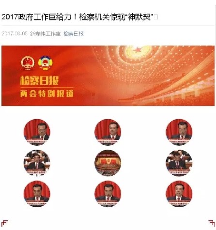 检察日报社着力打造两会“动新闻”,制作微信图文产品《2017政府工作巨给力!检察机关惊现“神默契”》,将李克强总理动图表情包和工作报告深度解读融为一体,与检察工作相结合,令人耳目一新。