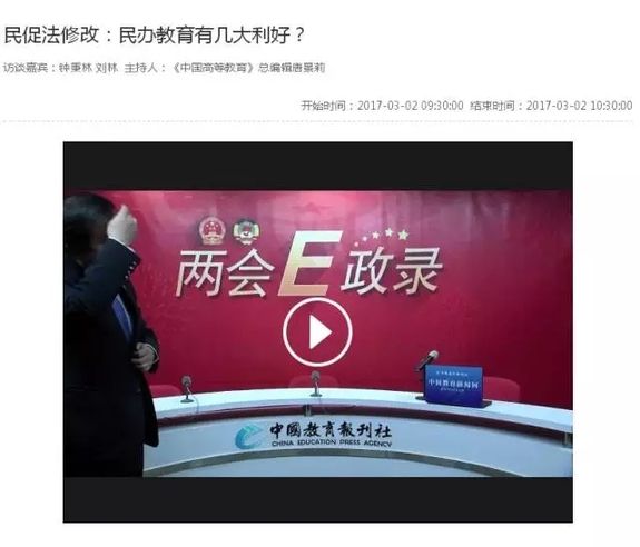 中国教育报刊社邀请知名专家学者、基层学校教师代表委员接受视频专访,通过中国教育之声APP等进行直播;短视频栏目“E动两会”,通过该社新媒体推送、知名社会化视频网站及语音客户端多次传播,让受众深入了解中国教育事业的新发展。