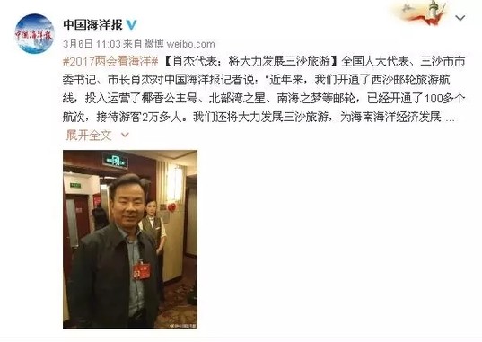 中国海洋报社利用微信公众号“观沧海”和微博“中国海洋报”,发布《总理定“目标” 代表、委员来“献策”海洋工作怎么干清楚了吗?》《肖杰代表:将大力发展三沙旅游》《张帆委员:加强海疆历史资料收集整理研究工作》等图文,以专业性、翔实性、直观性取胜,为读者提供有用信息,广受关注。