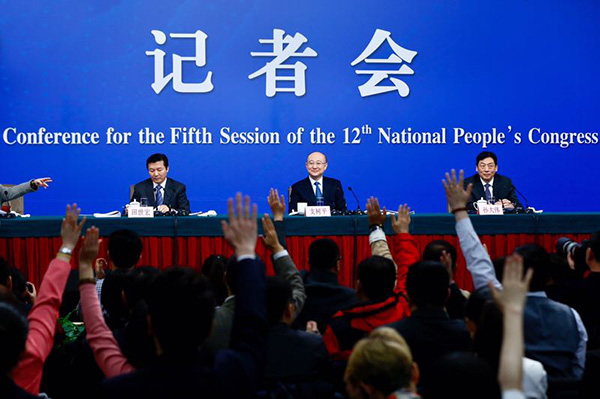 中新网3月14日消息,当日,十二届全国人大五次会议新闻中心举行记者会,邀请国家质检总局局长支树平、副局长兼国家认证认可监督管理委员会主任孙大伟、国家标准化管理委员会主任田世宏就“质量提升”的相关问题回答中外记者的提问。