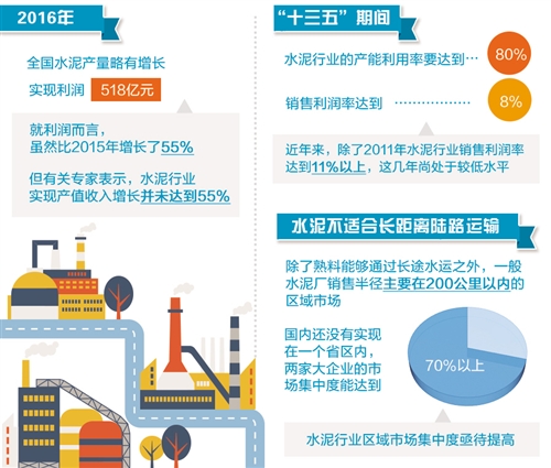 有关专家认为,近期水泥行业上市公司在资本市场上表现突出,除了得益于行业供给侧结构性改革,也受到行业内兼并重组事件频发的影响。去年中国建材和中材集团合并,涉及8家大的水泥公司,对于提高行业集中度起到了一定促进作用。2月27日,新疆天山水泥股份有限公司和甘肃祁连山水泥集团股份有限公司分别发布公告称,接到控股股东中国中材股份有限公司通知,中国建筑材料集团与中国中材集团重组获得商务部反垄断局批复。此外,在京津冀地区金隅集团和冀东水泥的整合,使得金隅冀东水泥一跃成为中国第三大规模的水泥企业。去年下半年,华北地区一改过去低价倾销的市场状况,水泥价格开始稳步回升。到了去年年末,连年亏损的冀东水泥开始扭亏为盈。