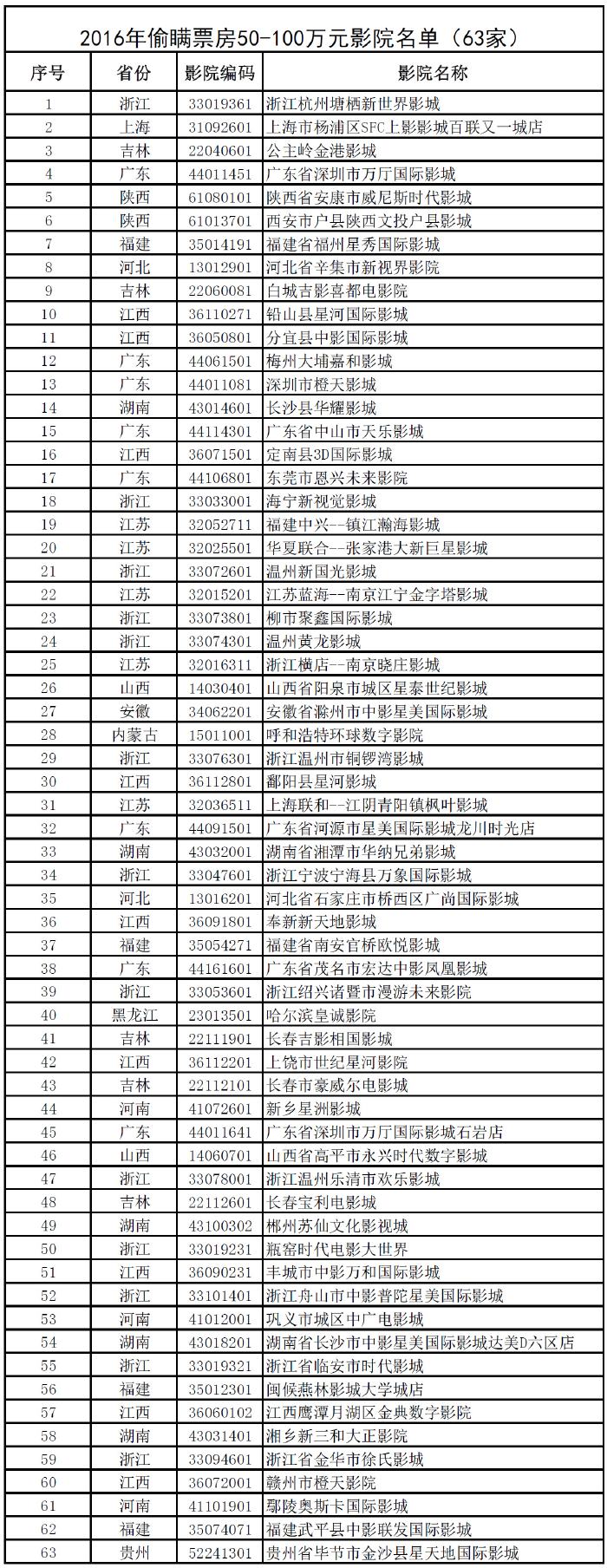 二、浙江杭州塘栖新世界影城等63家影院瞒报票房在50万元至100万元之间,情节严重,责令其自3月27日起停业整顿不少于60日。
