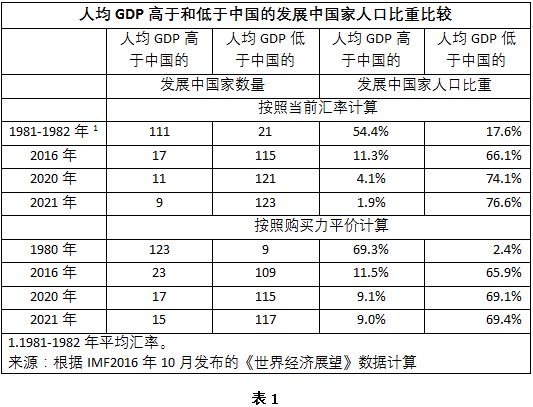 • 2016年则相反,人均GDP高于中国的发展中国家人口比重仅为11%,人均GDP低于中国的发展中国家人口比重则为66%。
