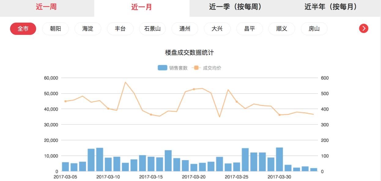 今年1月、2月、3月,北京楼市交易量基本持平。然而,从3月31日起,新建住房成交量却比之前一周每日成交了大幅减少。其中3月30日,成交量为152套;3月26日为148套,而且在从3月1日~30日期间,仅有3月20日一天交易量少于50套。而3月31日起的4天,交易量均小于50套,而且在昨天(4月3日)仅成交20套。