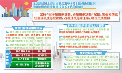 住房城乡建设部、国土资源部近日联合发布《关于加强近期住房及用地供应管理和调控有关工作的通知》,要求合理安排住宅用地供应,科学把握住房建设和上市节奏,加大住房保障力度,强化地方主体责任。业内人士认为,《通知》是进一步加强房地产市场调控的重要方针,突出了因地制宜,体现了差别化。