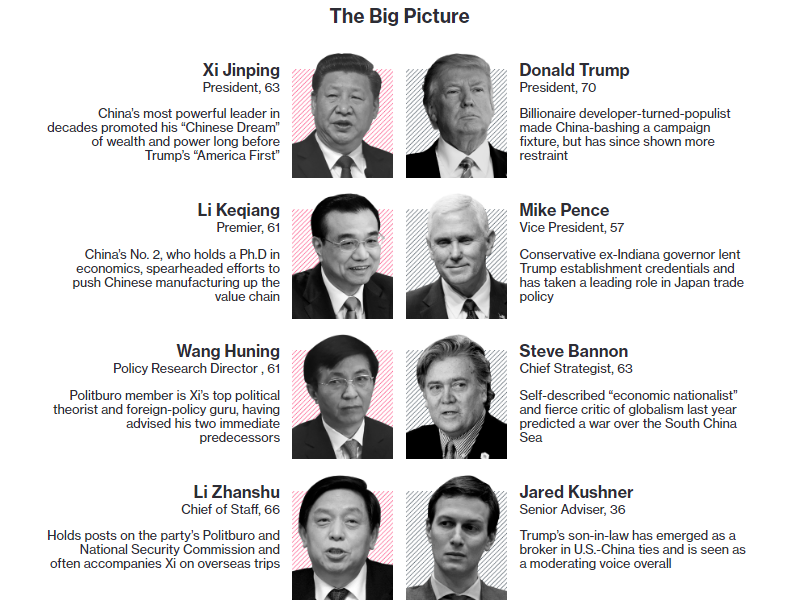 一位是承诺“使美国再次伟大”的特朗普总统,另一位是推动着13亿人的“中国梦”的习近平,两位元首将于星期四在佛罗里达州的棕榈滩举行首次会议。唐纳德.特朗普和习近平主席所带领的国家占世界经济总量的三分之一,占全球贸易的四分之一,拥有世界上两个最强大的军队。那么他们的谈判小组是否建立合作呢?