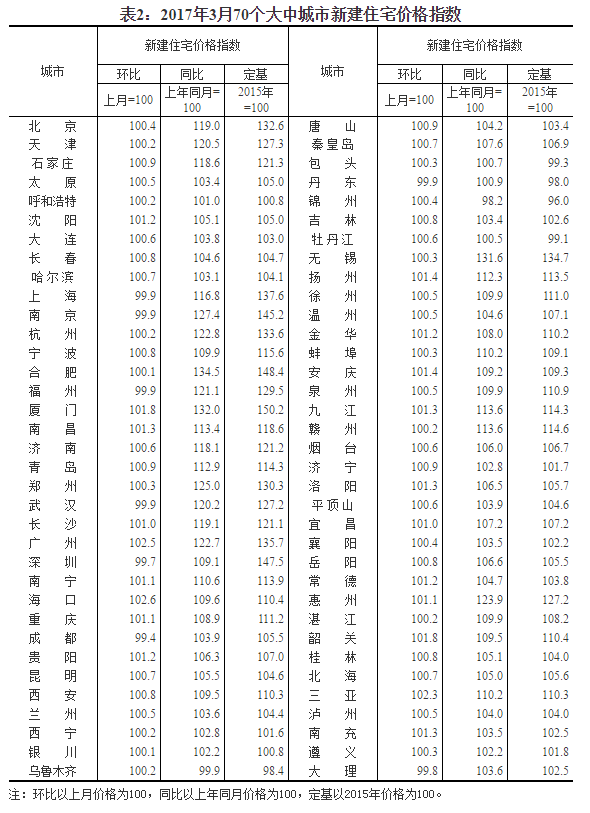 国家统计局今日发布了2017年3月份70个大中城市住宅销售价格统计数据。对此,国家统计局城市司高级统计师刘建伟进行了解读。